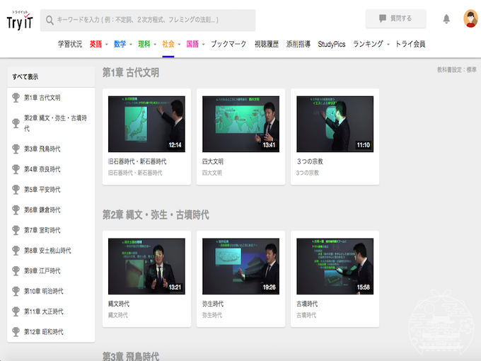 ずっと0円のTry itの学習チャンネルなら、手軽に歴史の勉強ができます。
