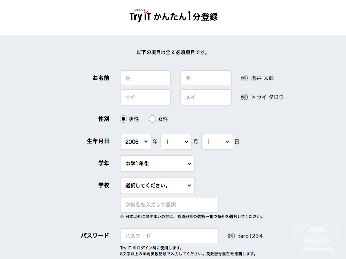 あとはサイトにログインするためのパスワードを入力して「Try itをはじめる」をタップすれば登録完了。