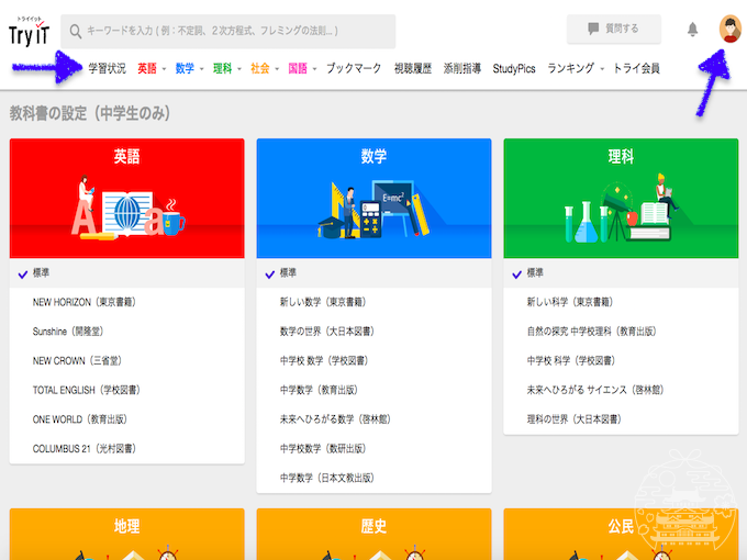 このTry it、歴史だけでなく国語・算数・理科・社会・英語の5科目ぜーんぶが学習できるのです。